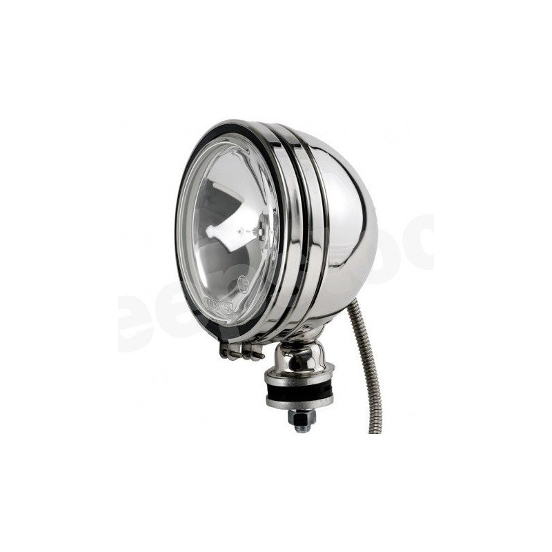 Equipée d'une ampoule H3 100watts 12volts, Coque métallique traitée en finition CHROME non garantie, Protége gaine électrique inox, cache phare plastique, 2 diamètres au choix : 5", ou 6"