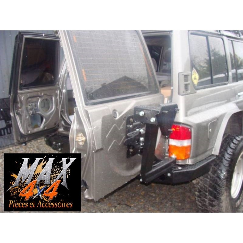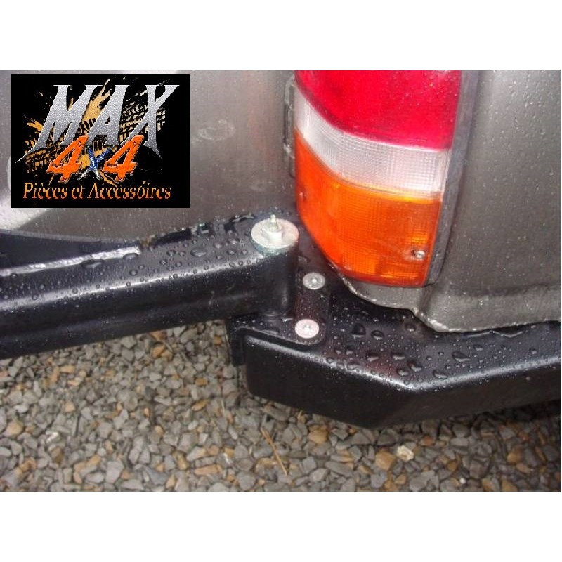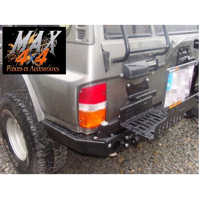 Pare choc arriere livré avec : 2 anneaux pour manilles. 2 trous pour levage cric hilft.Possibilitez de mettre les deux portes roue de secour ou porte jerrycan au choix . Les pres percage sont inclus afin de poser pare la suite les portes roues de secour ou jerrycan. Usage hors route non homologué sur voie publique