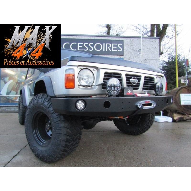 Pare choc acier livré avec : 2 anneaux de fixation pour manilles. Platine de treuil integrée. 2 trous pour levage au cric hilift. Feux additionnel en options. Usage hors route non homologué sur voie publique