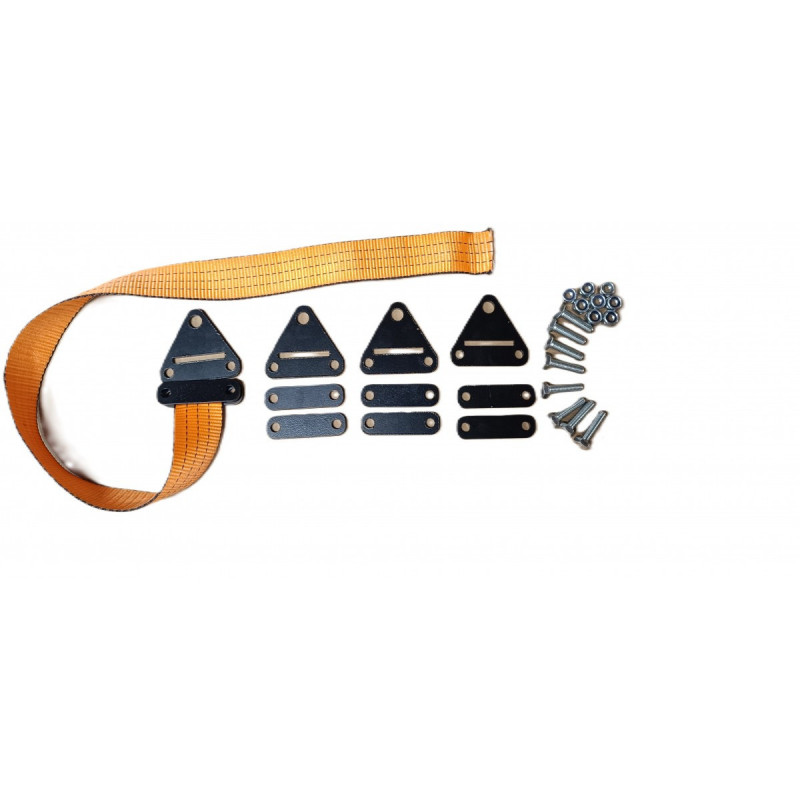 Le kit sangle anti débattement est prévu pour un essieu.Il comprend 2 sangles plus 4 supports à visser sur le chassis et l'essieu ou triangle,dans certain cas seulement 2 supports sont nécessaire car on peut faire le tour du tirant de pont avec la sangle.Le montage est entièrement réglable pour pouvoir s'adapter à tous types de longueur d'amortisseurs